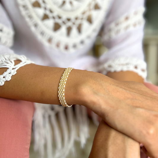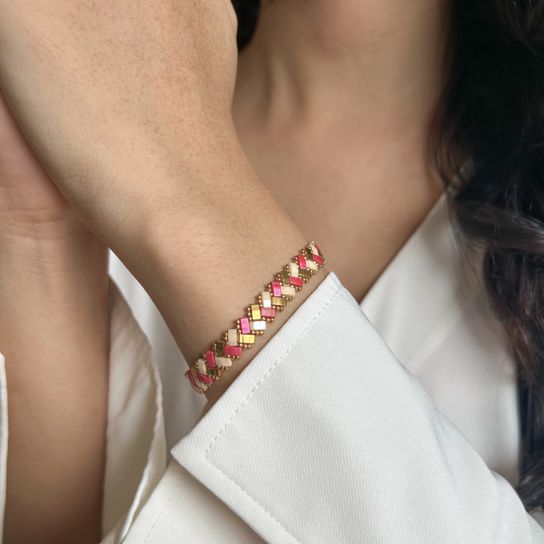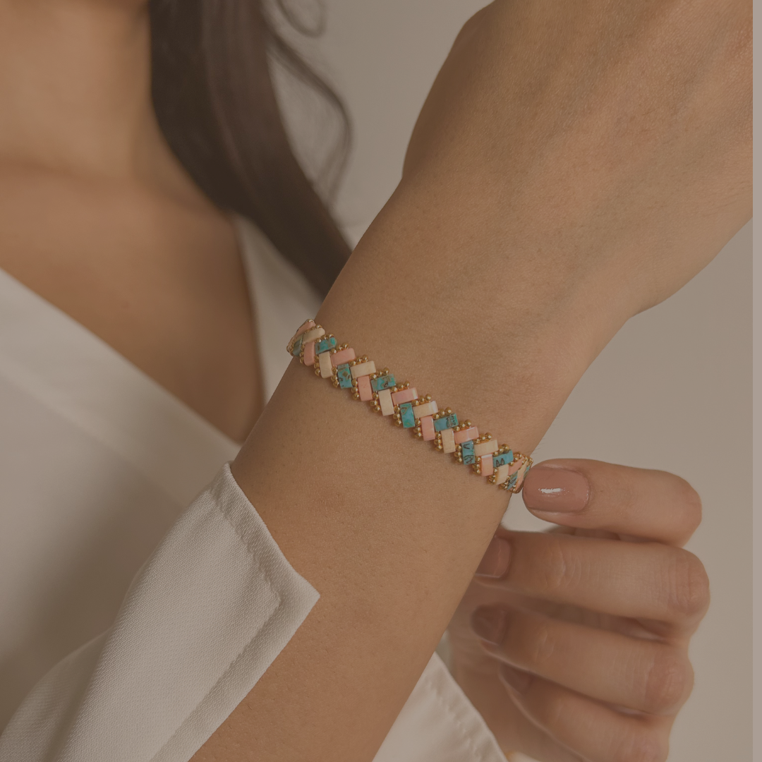 WITH VIBRANT COLOURS, UNIQUE TEXTURES AND EYE-CATCHING DESIGNS, BEADED BRACELETS ARE THE PERFECT WAY TO ADD PERSONALITY TO ANY OUTFIT. STACK THEM HIGH, OR WEAR A SINGLE CHUNKY PIECE, THEY ARE GUARANTEED TO MAKE A STATEMENT!