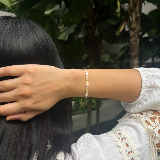 WHETHER YOU'RE PAIRING SLEEK METALS OR COMBINING VIBRANT BEADS, STACKED JEWELLERY LETS YOU SHOWCASE YOUR STYLE, ONE LAYER AT A TIME. THE BEST PART? THERE ARE NO RULES - JUST STACK, SHINE AND REPEAT!