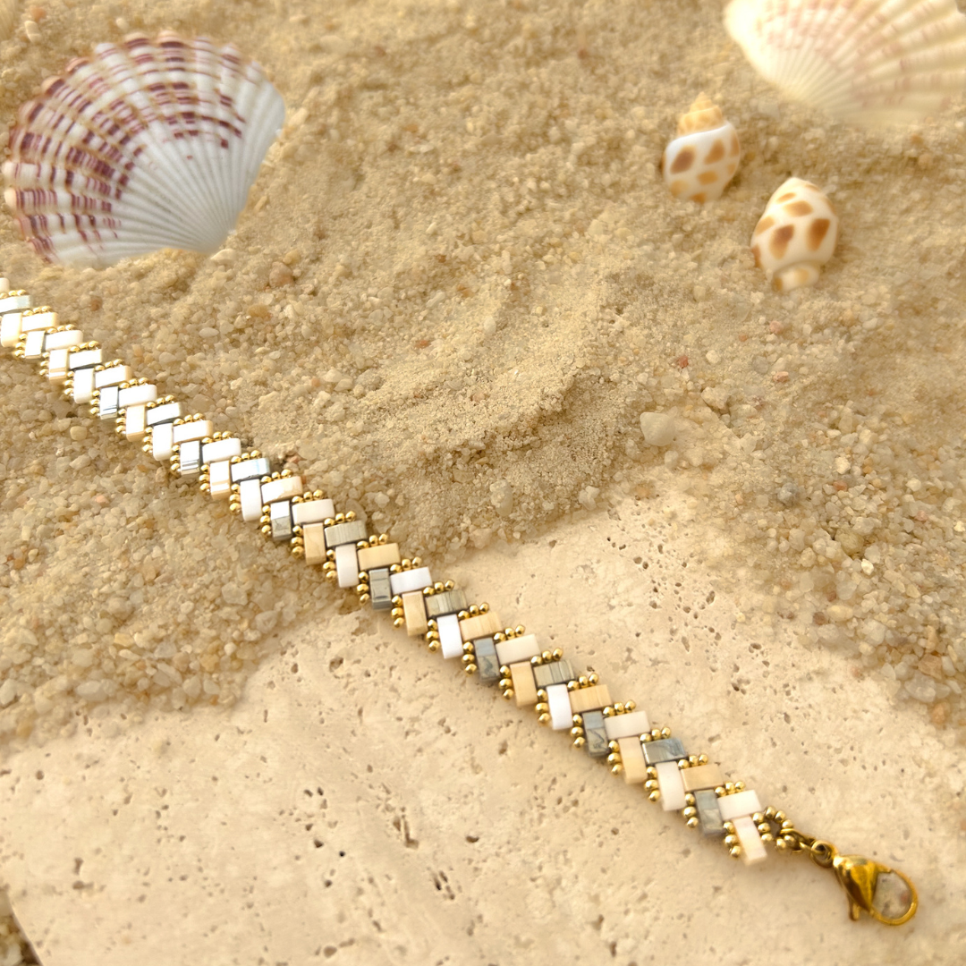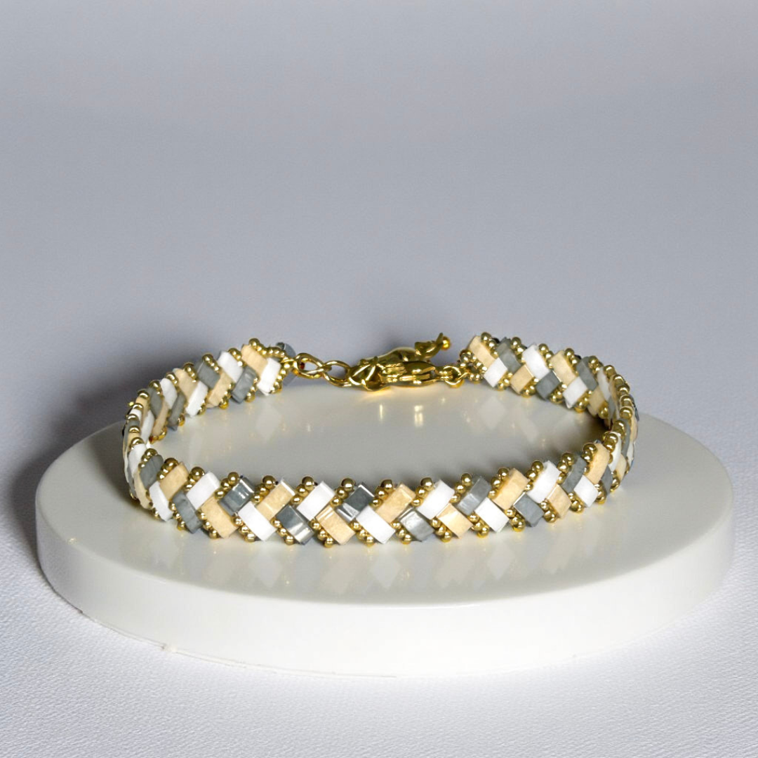 Your beadwoven jewelry is crafted from countless tiny, high-quality glass beads, sewn together. To keep it in pristine condition, handle it with care, avoid contact with hard surfaces, and gently wipe it with a non-alcohol wipe or a jewelry cloth to maintain its shine.