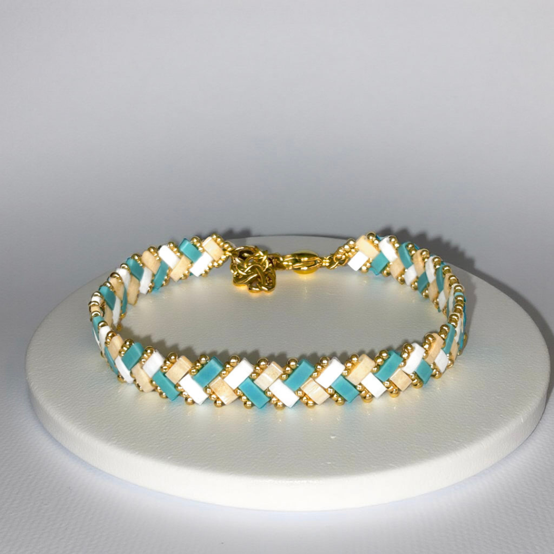 Your beadwoven jewelry is crafted from countless tiny, high-quality glass beads, sewn together. To keep it in pristine condition, handle it with care, avoid contact with hard surfaces, and gently wipe it with a non-alcohol wipe or a jewelry cloth to maintain its shine.