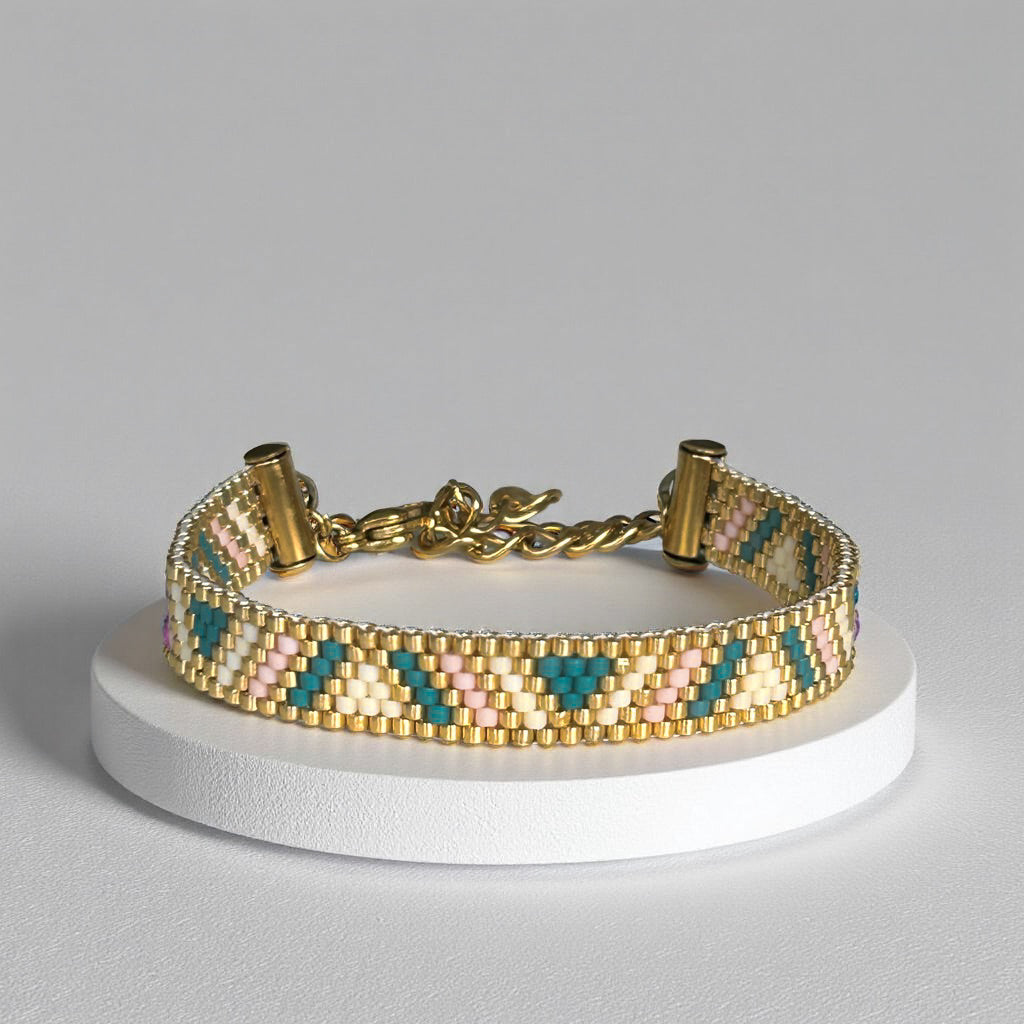 A vibrant blend of blue, pink, white and gold — this bracelet adds a playful yet polished touch to any look. Bold enough to stand out, subtle enough to wear every day.