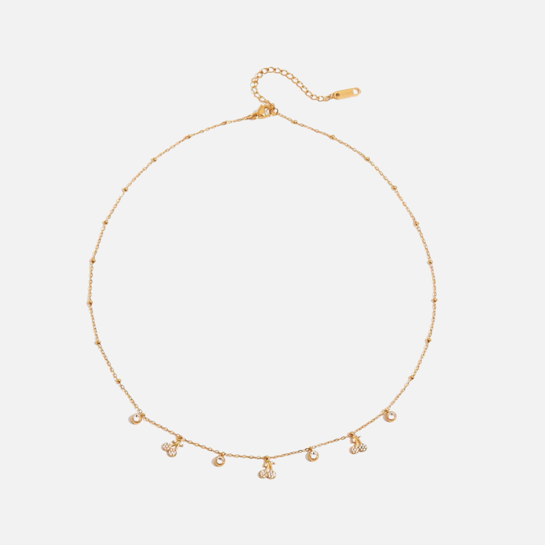 Sweet and playful, the Cherry Necklace features delicate cherries accented with sparkling stones on a fine gold-plated chain. Perfect for adding a touch of fun and femininity to any outfit, day or night.