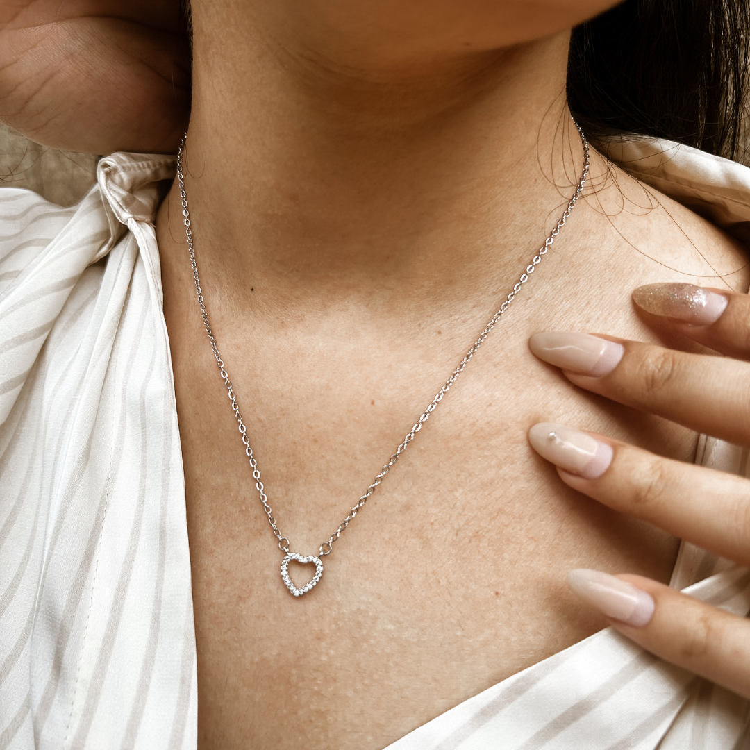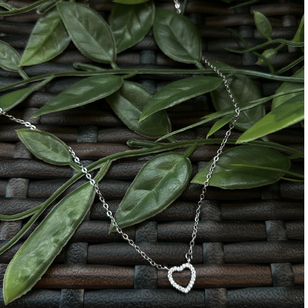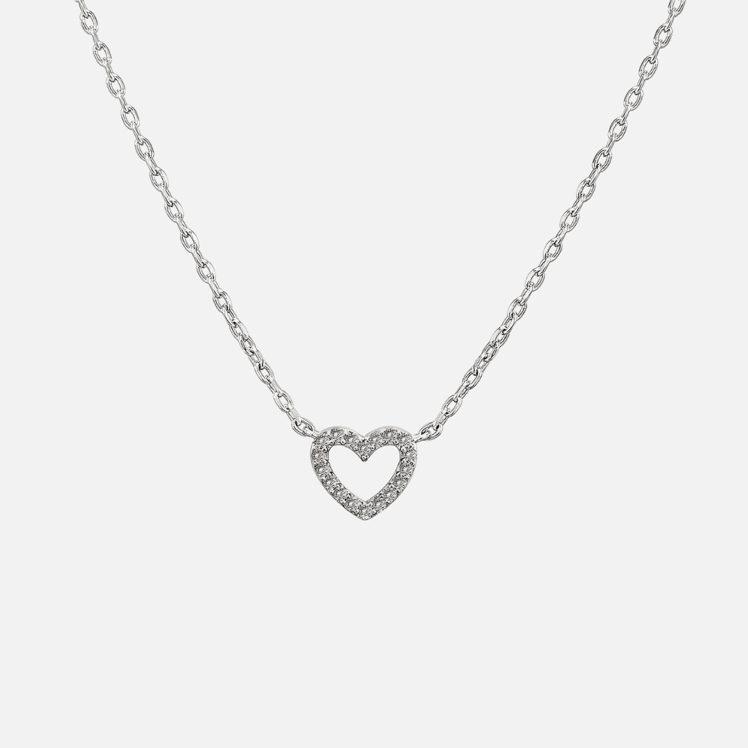 This delicate necklace features a silver heart adorned with crystals, adding just the right amount of sparkle and romance to your look. A timeless piece perfect for everyday wear or gifting.