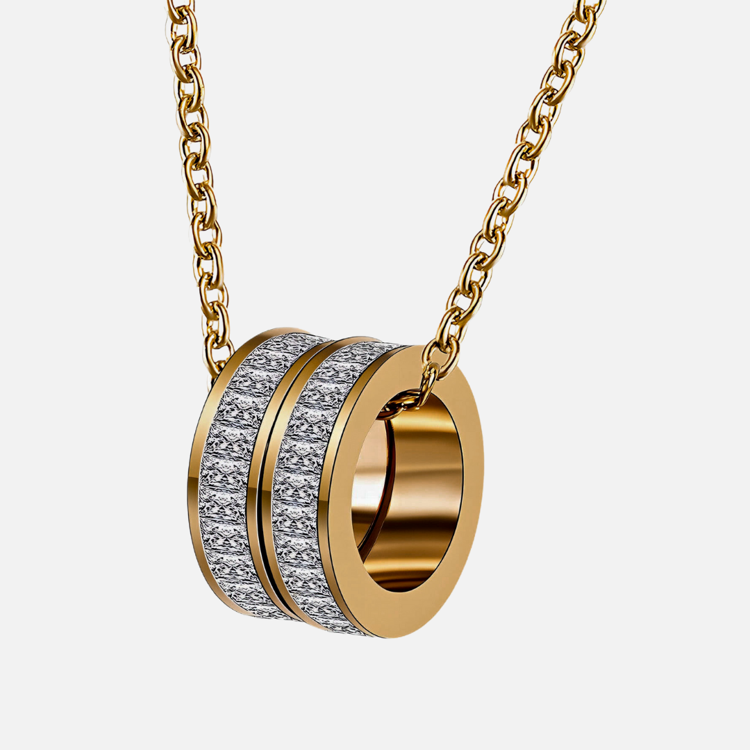 This necklace features a sleek gold barrel pendant, adding a bold yet elegant touch to your look—perfect for making a statement with its modern, minimalist design.