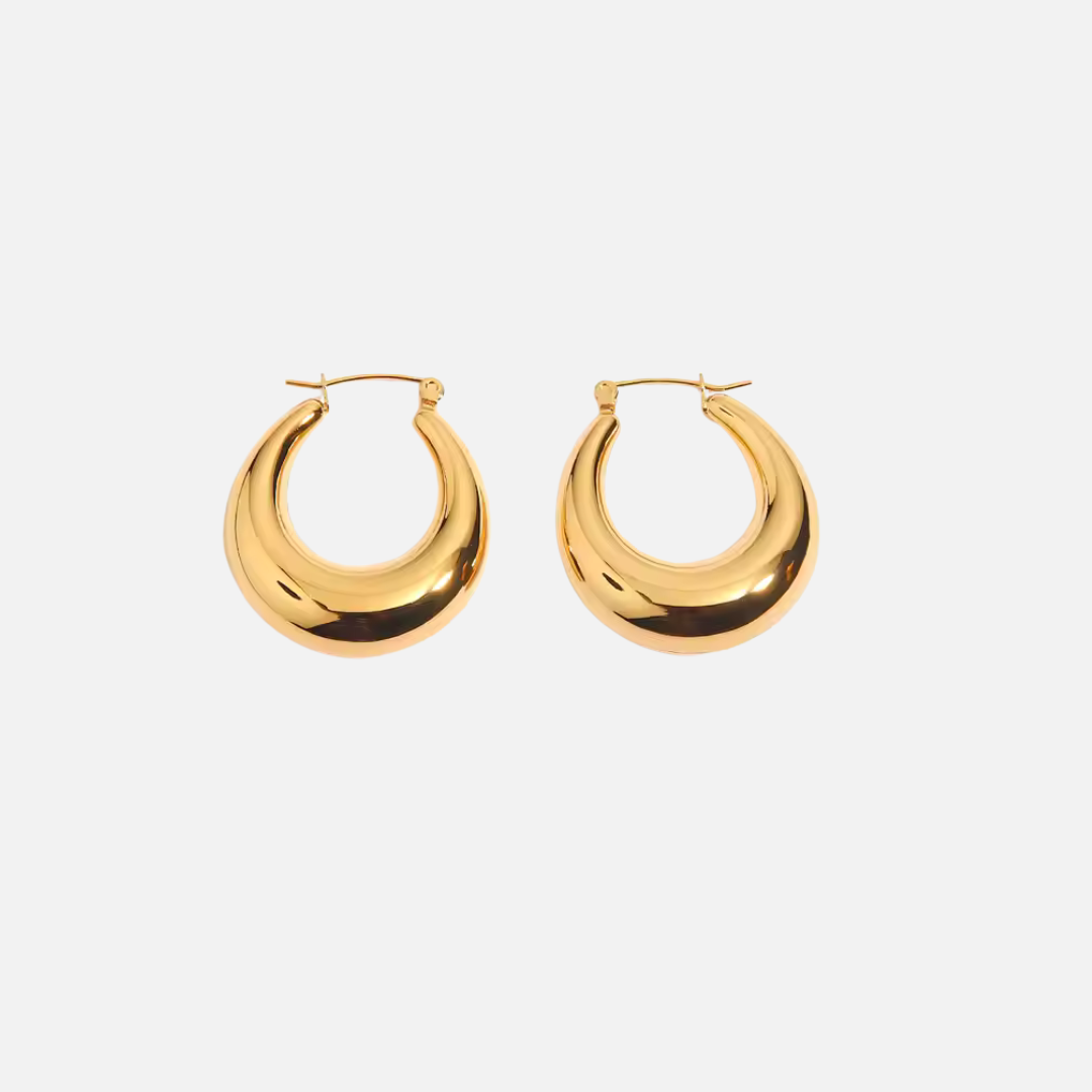 The Gold Curved Hoop Earrings feature a sleek, graceful curve, adding a touch of elegance and timeless sophistication to any look. Perfect for day-to-night wear, they blend classic design with modern flair.