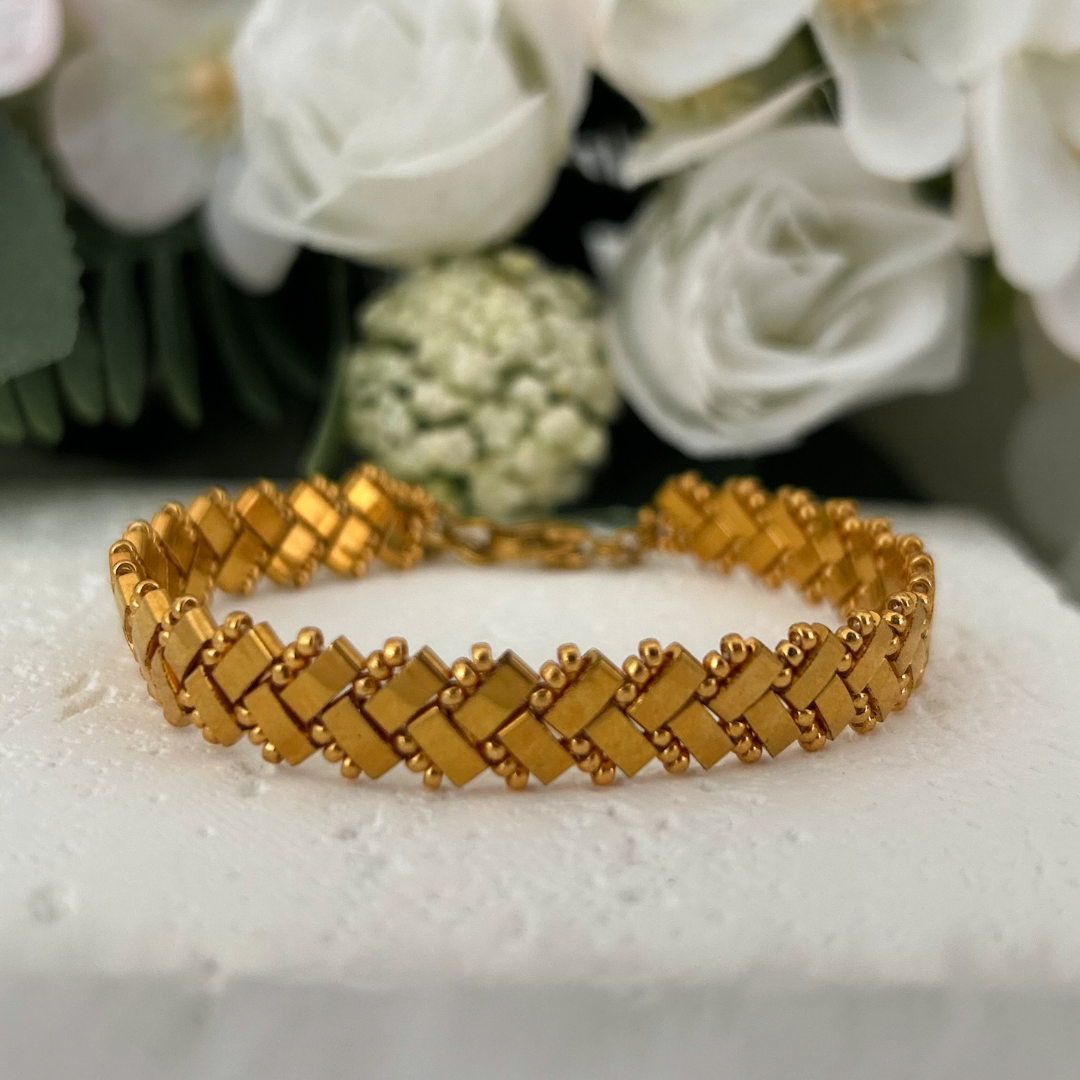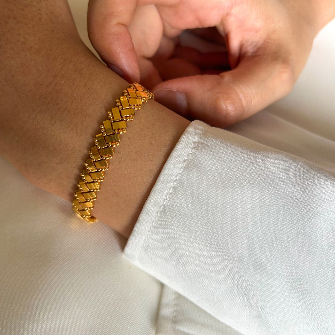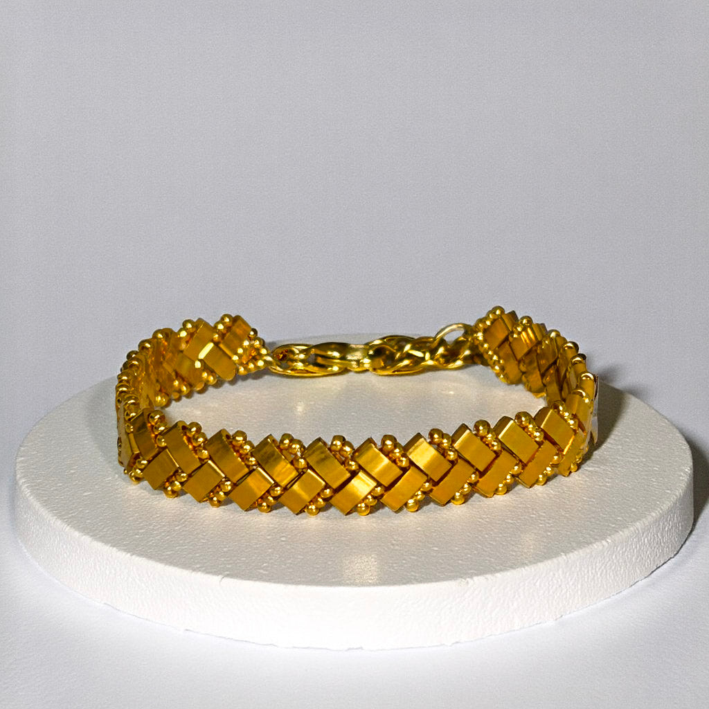 Lamu Beaded Bracelet is a gold colored bracelet combines elegance, comfort, and style, making it a versatile addition to any outfit.
