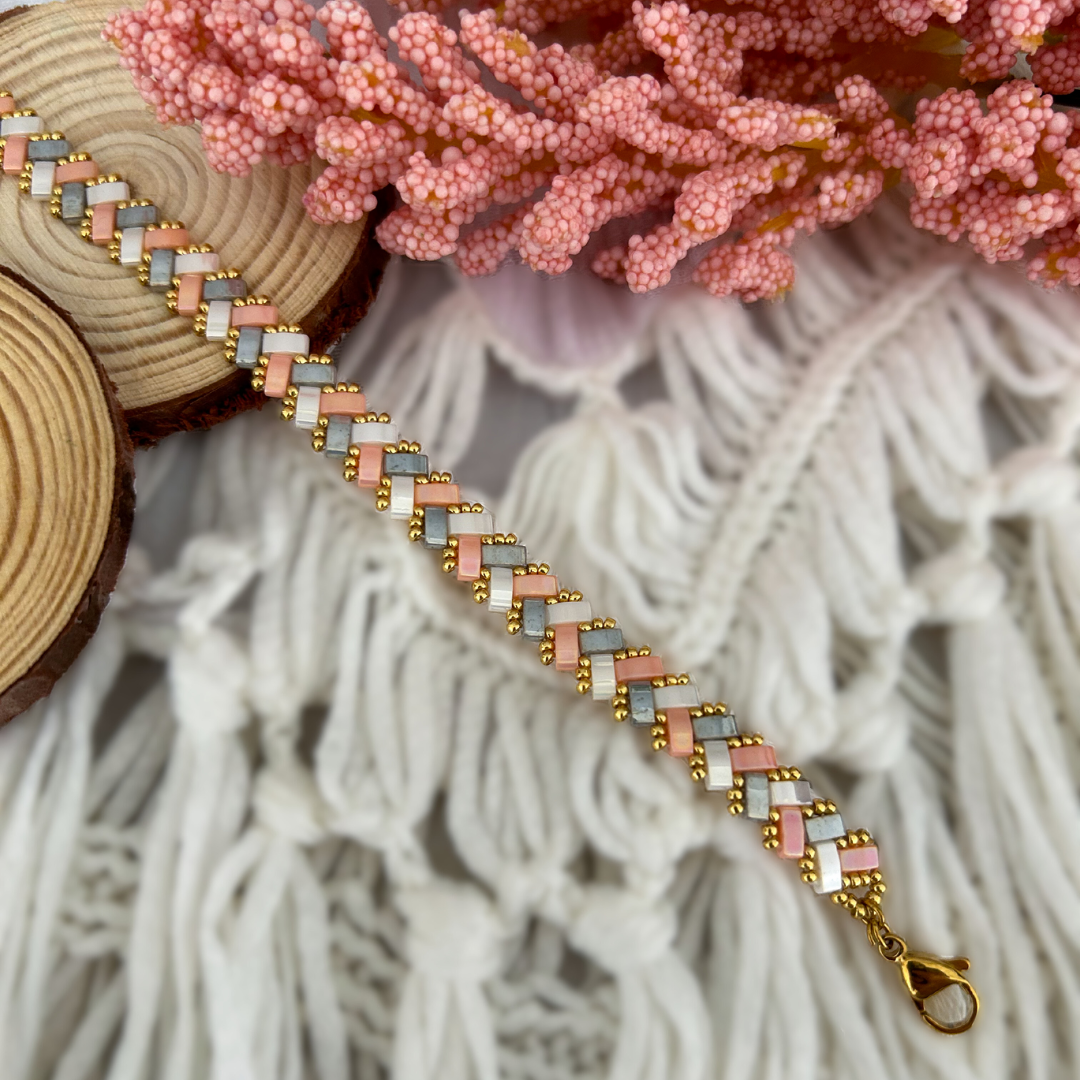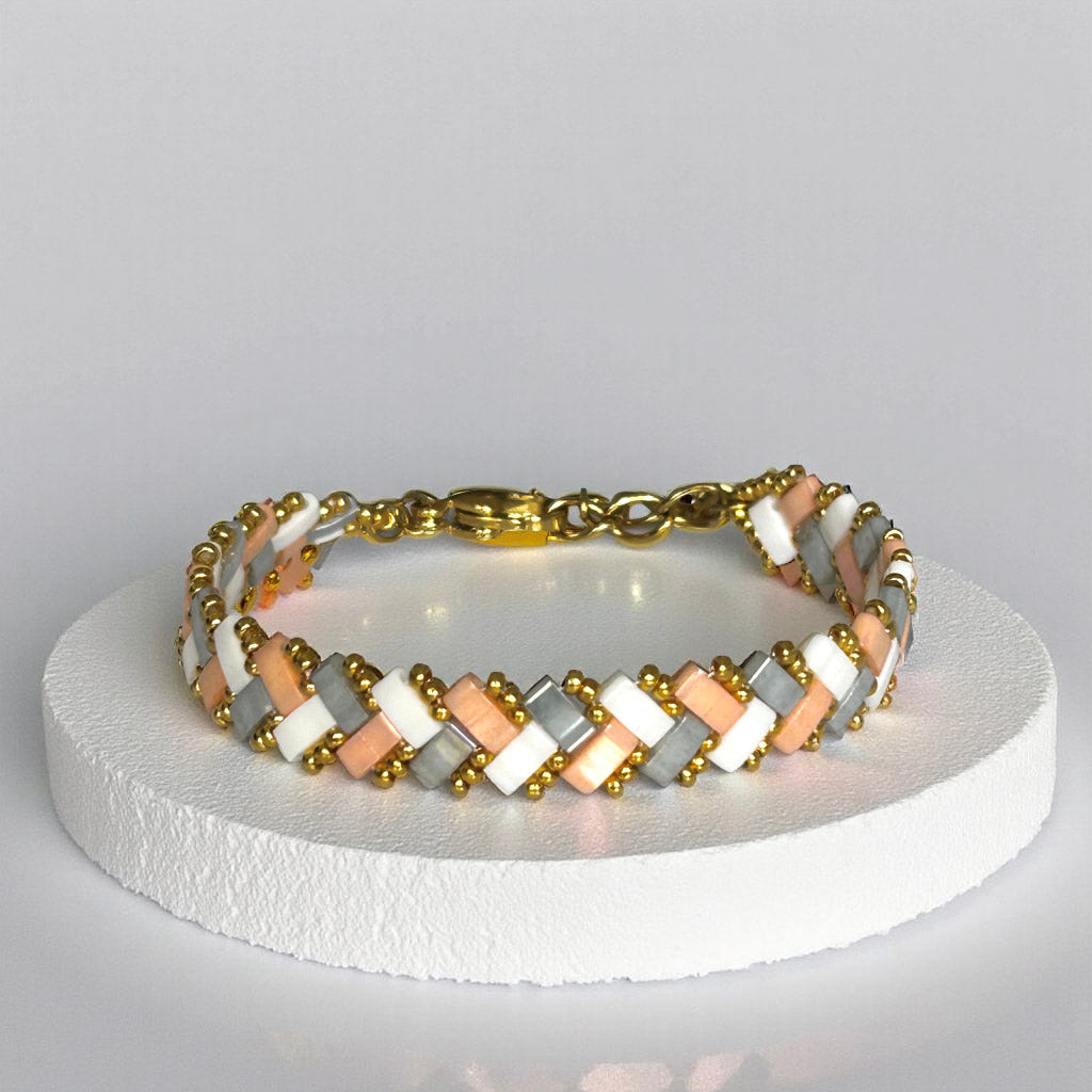 Your beadwoven jewelry is crafted from countless tiny, high-quality glass beads, sewn together. To keep it in pristine condition, handle it with care, avoid contact with hard surfaces, and gently wipe it with a non-alcohol wipe or a jewelry cloth to maintain its shine.