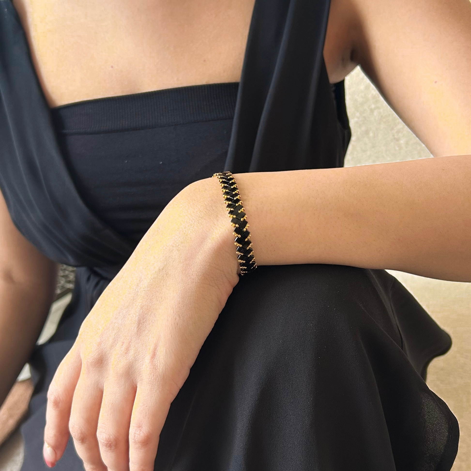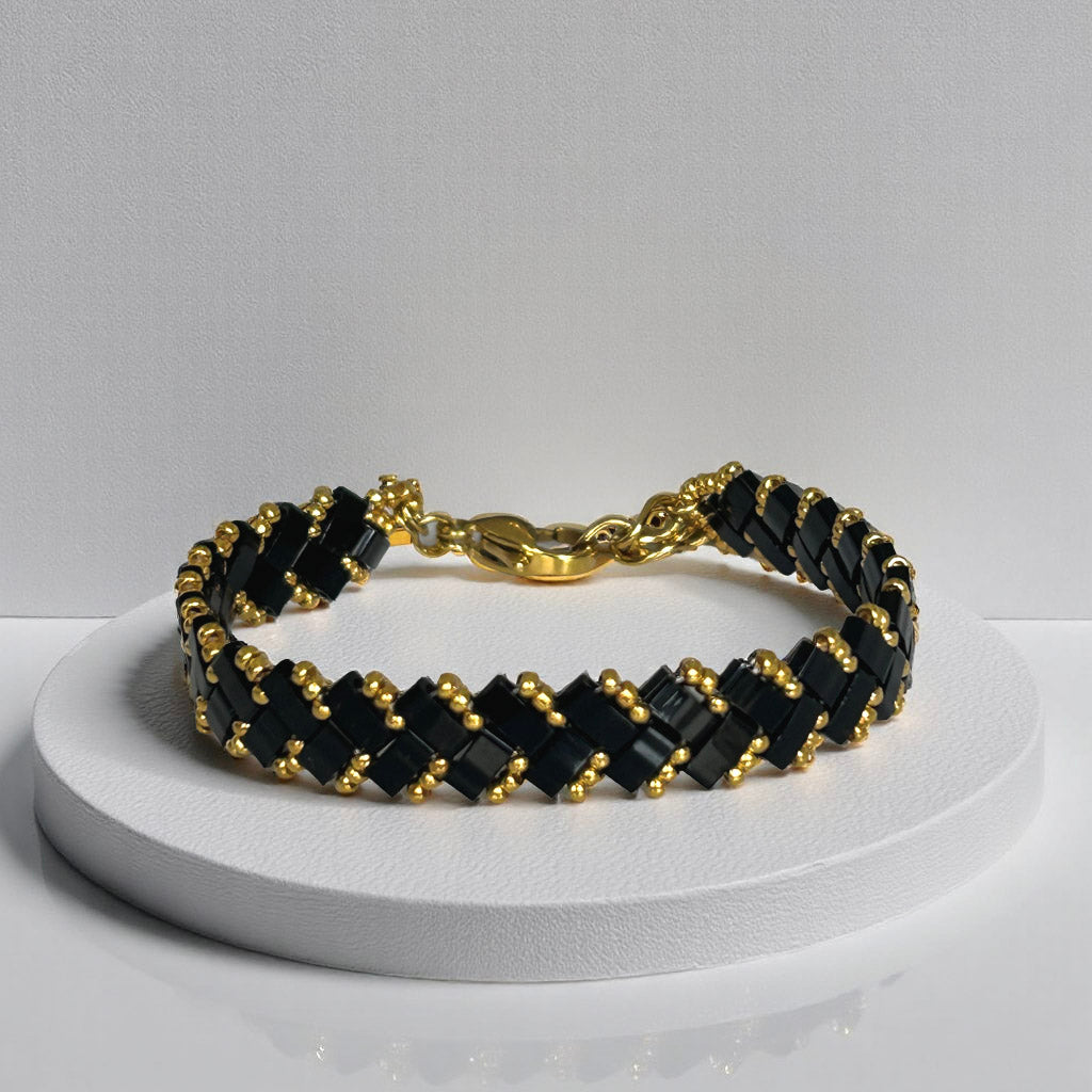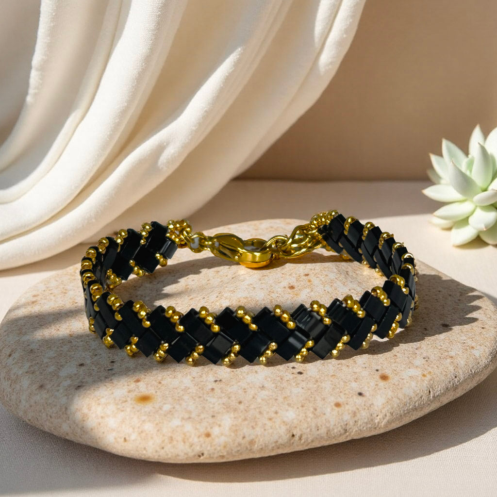 Your beadwoven jewelry is crafted from countless tiny, high-quality glass beads, sewn together. To keep it in pristine condition, handle it with care, avoid contact with hard surfaces, and gently wipe it with a non-alcohol wipe or a jewelry cloth to maintain its shine.