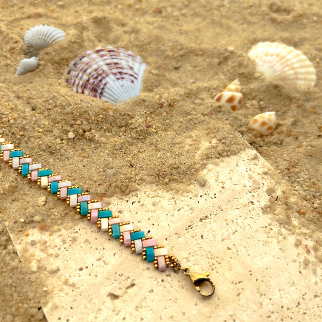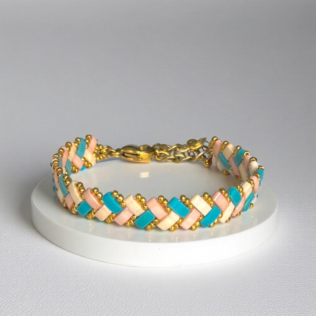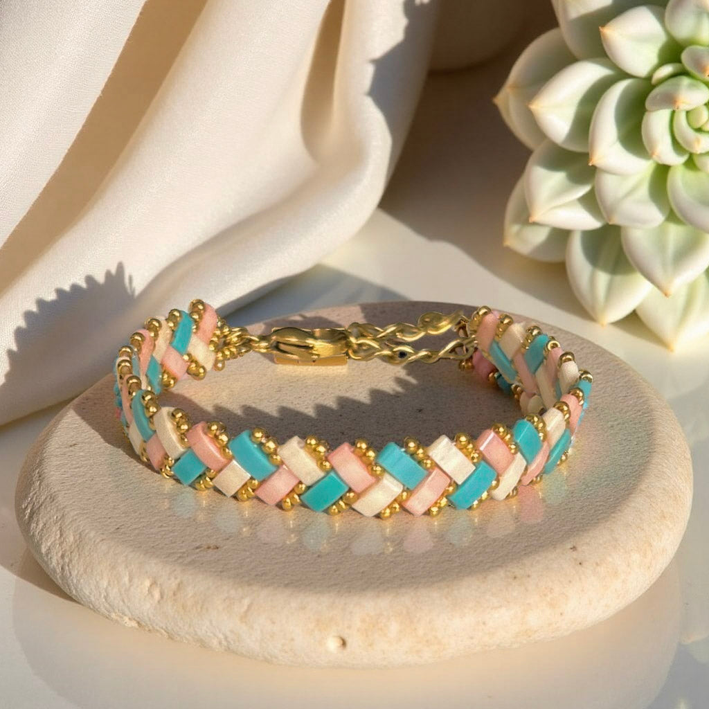 Your beadwoven jewelry is crafted from countless tiny, high-quality glass beads, sewn together. To keep it in pristine condition, handle it with care, avoid contact with hard surfaces, and gently wipe it with a non-alcohol wipe or a jewelry cloth to maintain its shine.
