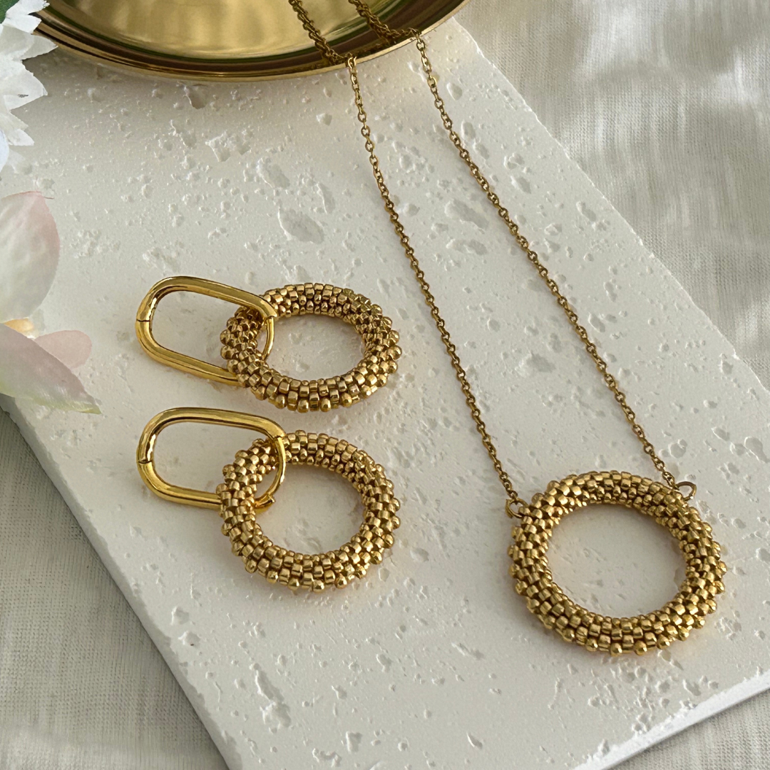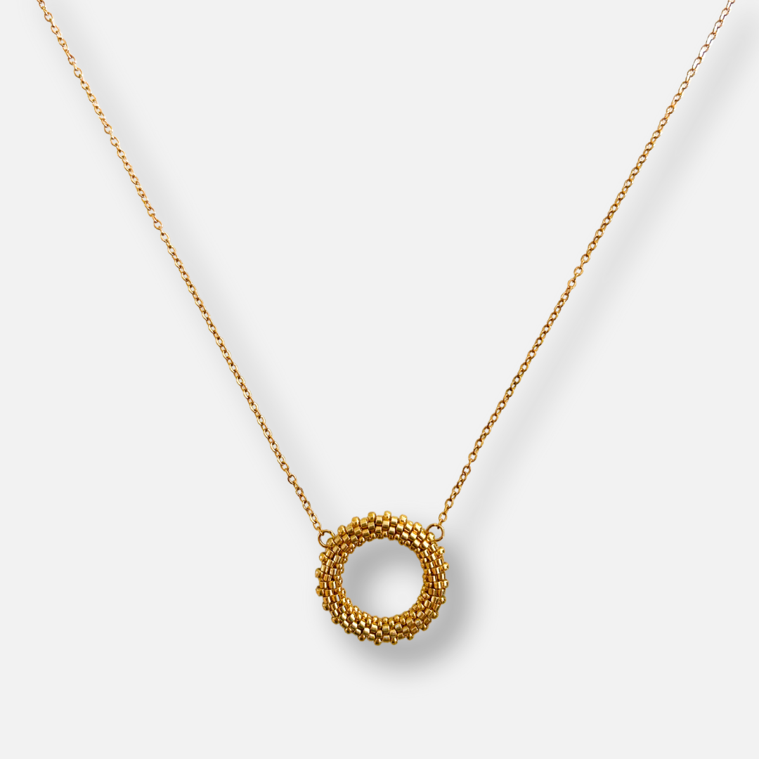 Metali Hoop Necklace is made of high-quality white gold beads, ensuring a durable and stylish piece of jewelry. Its intricate crochet design adds a touch of elegance to any outfit. Perfect for a formal occasion or as a statement piece, this bracelet is a must-have for any jewelry collection.