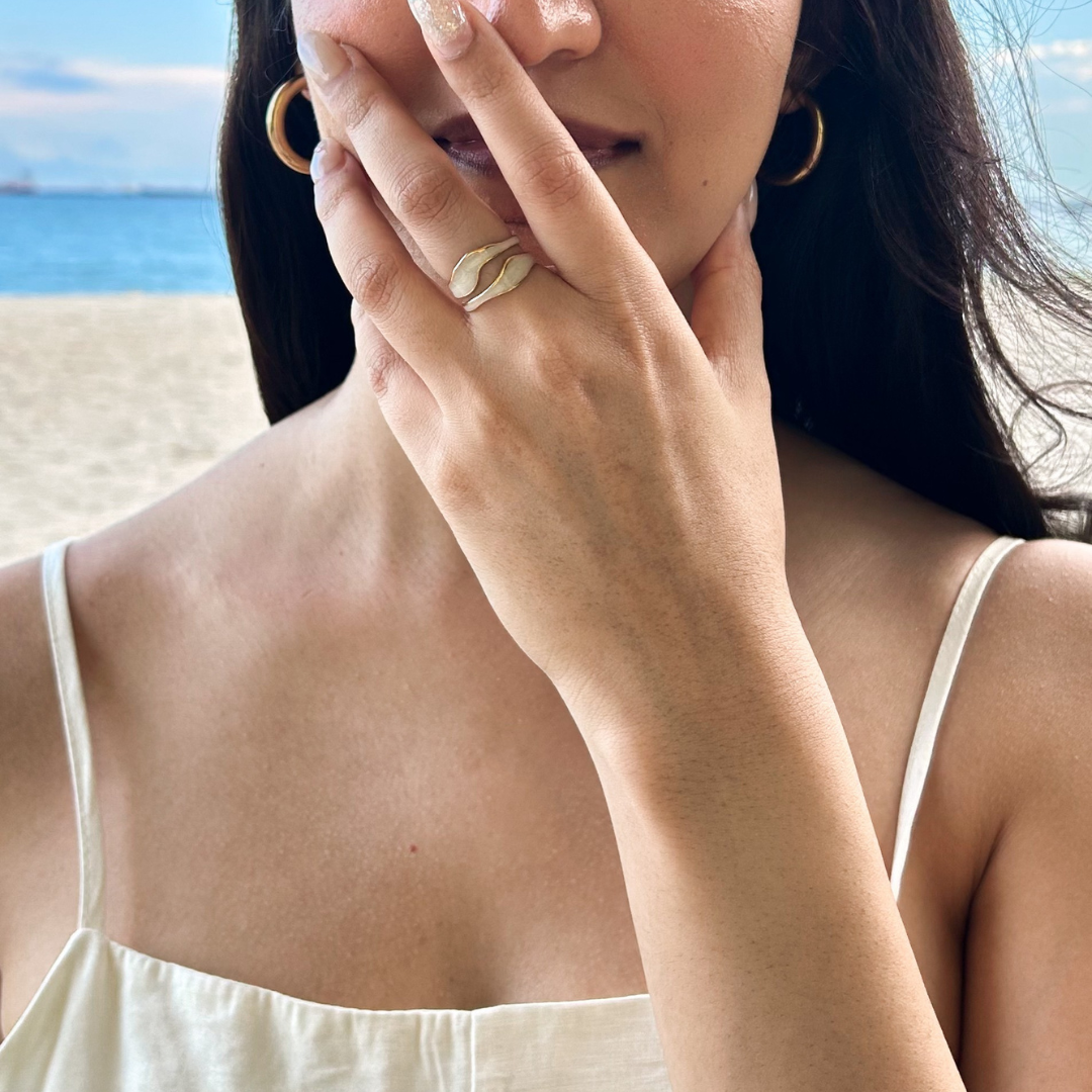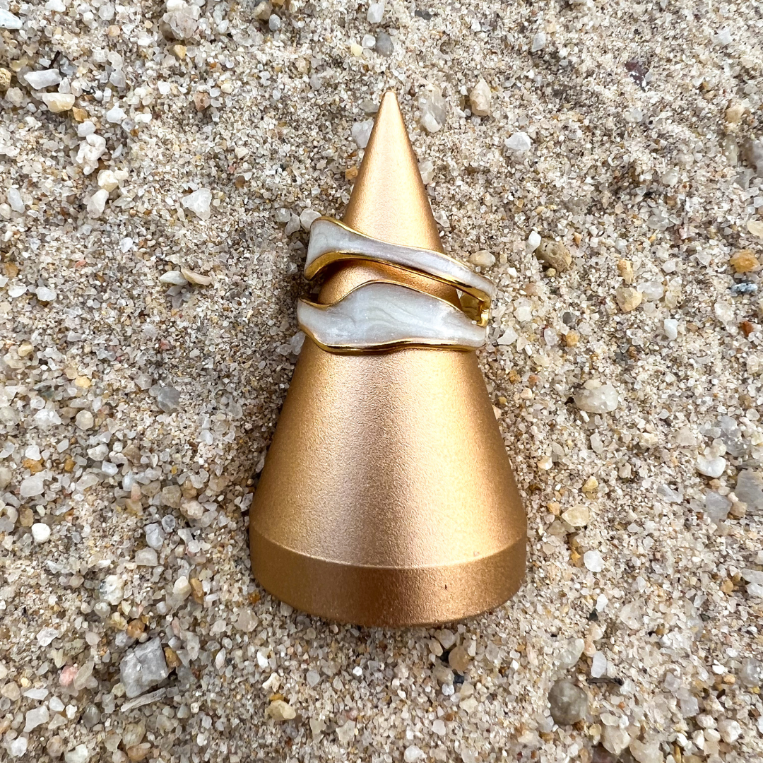 This adjustable white and gold ring blends timeless elegance with a customizable fit, offering a sophisticated touch that complements any style. Perfect for any occasion, it combines both comfort and luxury.