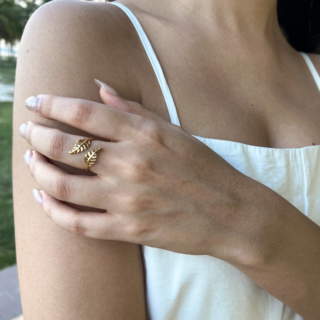This leaf designed adjustable gold ring blends timeless elegance with a customizable fit, offering a sophisticated touch that complements any style. Perfect for any occasion, it combines both comfort and luxury.