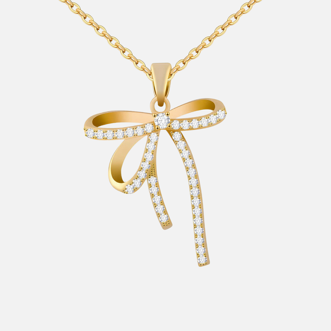 Graceful and sparkling, this gold ribbon necklace is accented with delicate crystals, creating a soft yet striking piece that adds elegance and charm to any look.