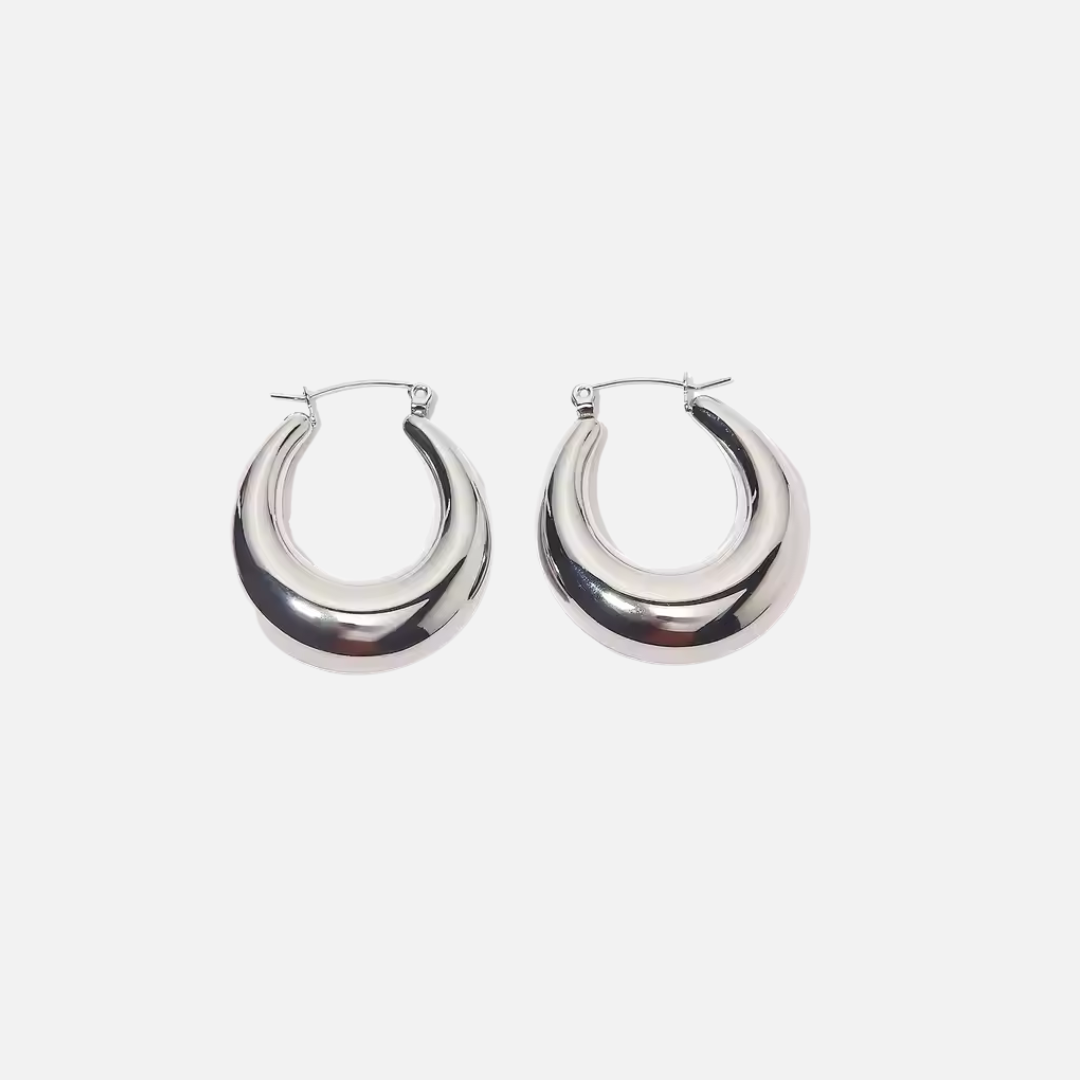 The Silver Curved Hoop Earrings feature a smooth, graceful curve that adds a modern yet timeless touch to your look. Their sleek design offers versatility, making them a perfect complement to both casual and formal styles.