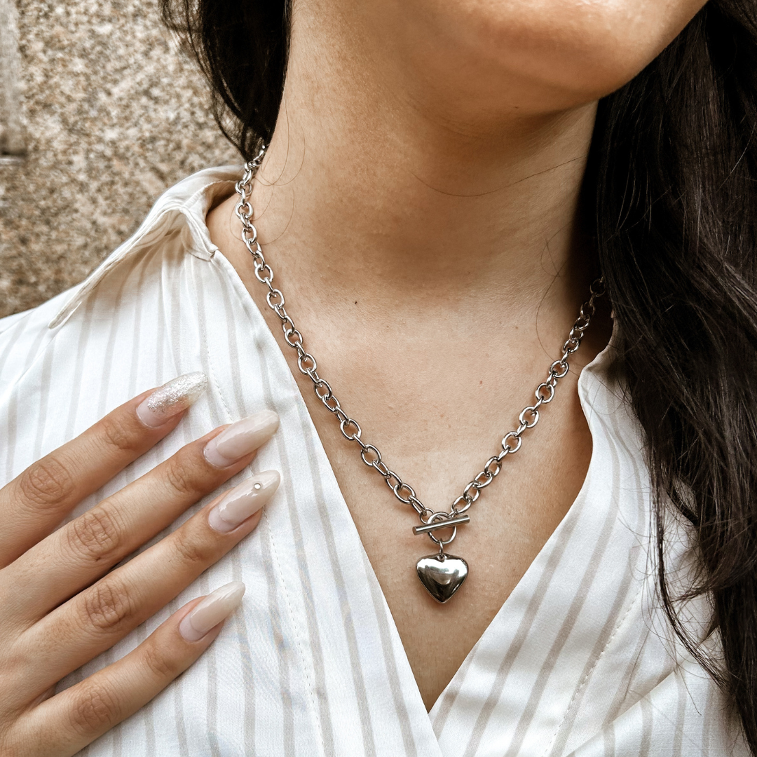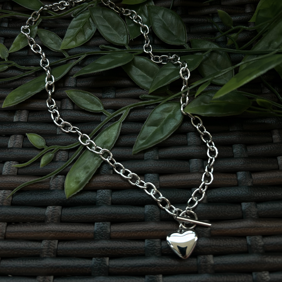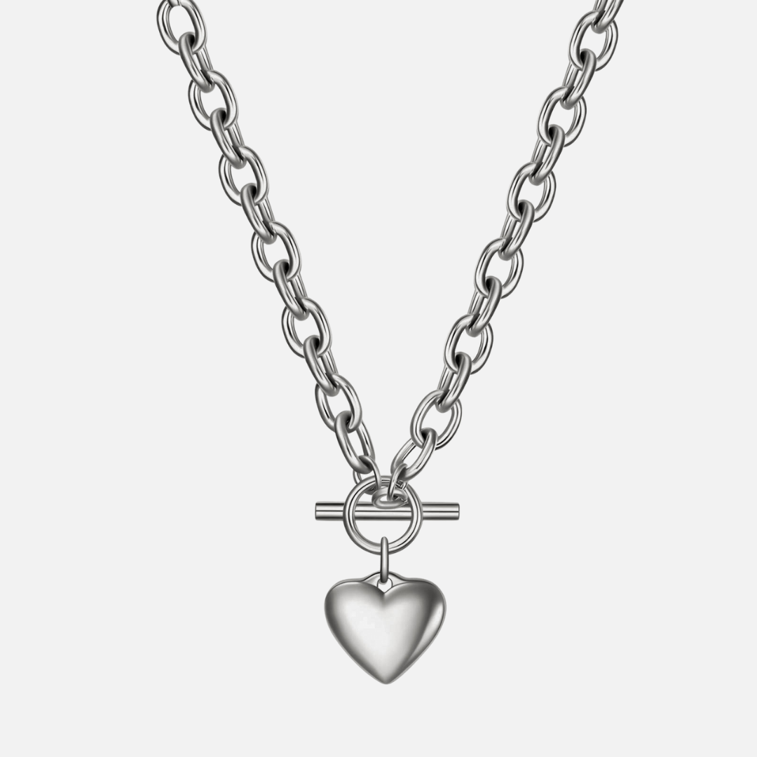 This heart pendant on a chain embodies love and elegance, making it a perfect symbol of affection. Its timeless design adds a meaningful touch to any outfit.