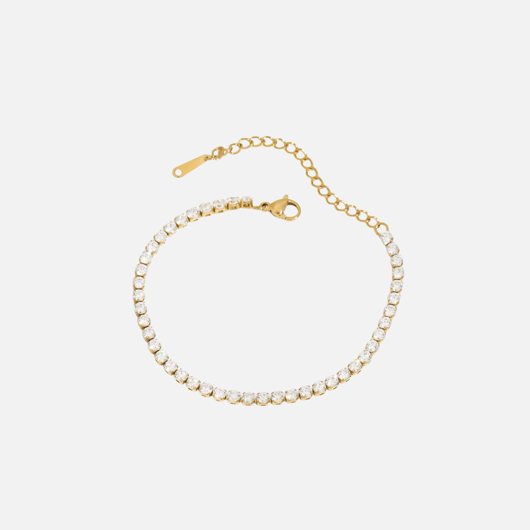 Timeless and refined, this classic tennis bracelet is lined with sparkling cubic zirconia that catch the light from every angle. A must-have piece that pairs effortlessly with any look, from everyday elegance to evening glamour