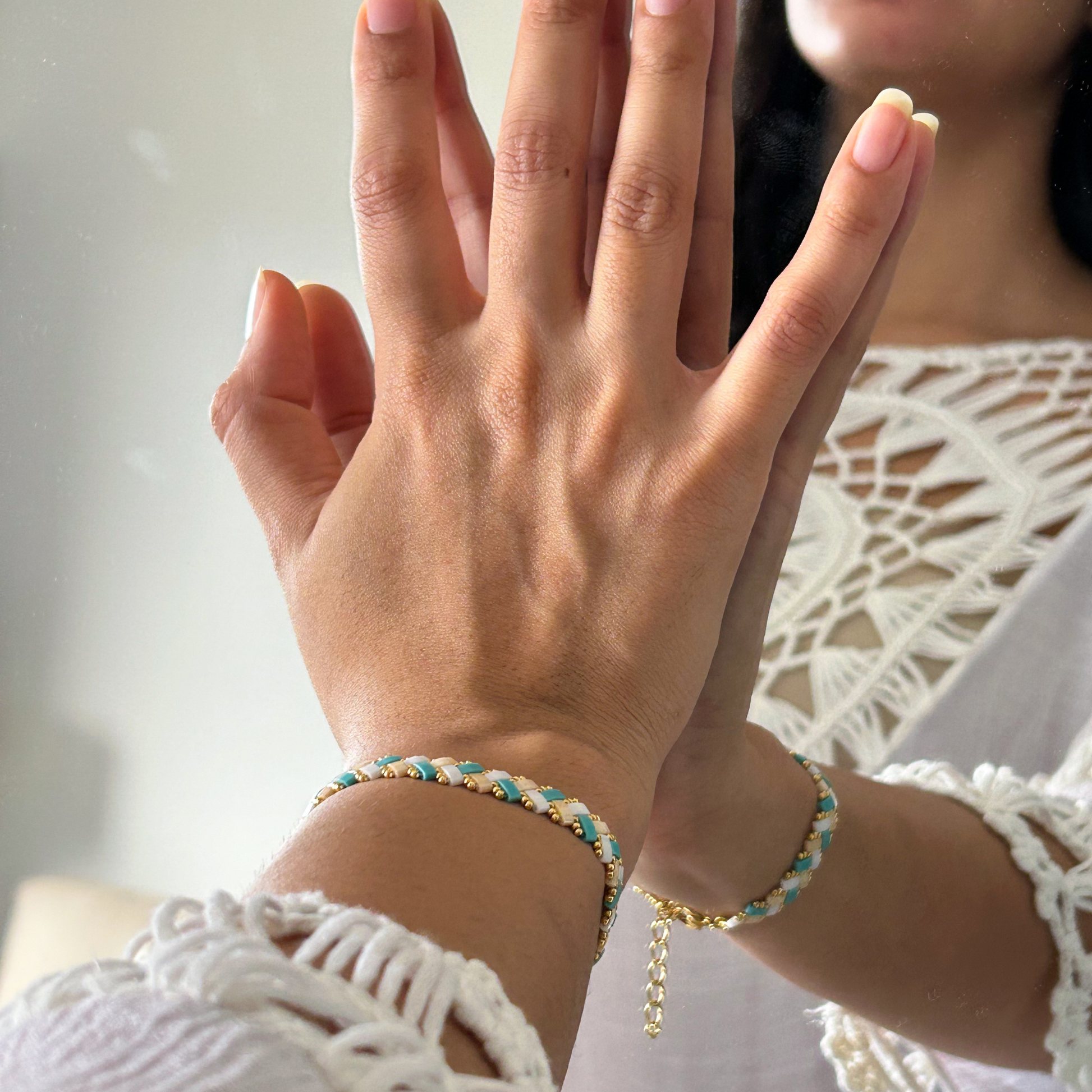 Rangi Beaded Bracelet is a delicate bracelet in soft pastel tones exudes a graceful and feminine charm. Perfect for layering or wearing alone, it adds a subtle touch of color to your style.