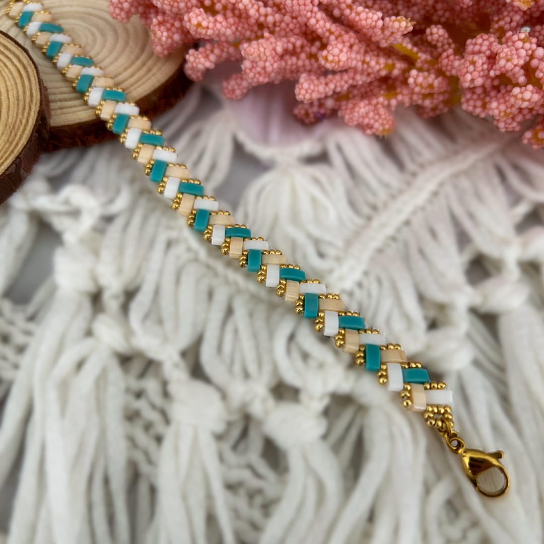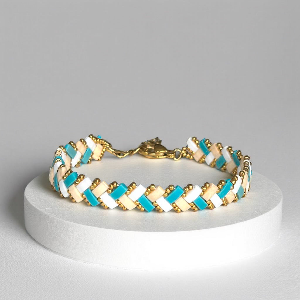 Your beadwoven jewelry is crafted from countless tiny, high-quality glass beads, sewn together. To keep it in pristine condition, handle it with care, avoid contact with hard surfaces, and gently wipe it with a non-alcohol wipe or a jewelry cloth to maintain its shine.