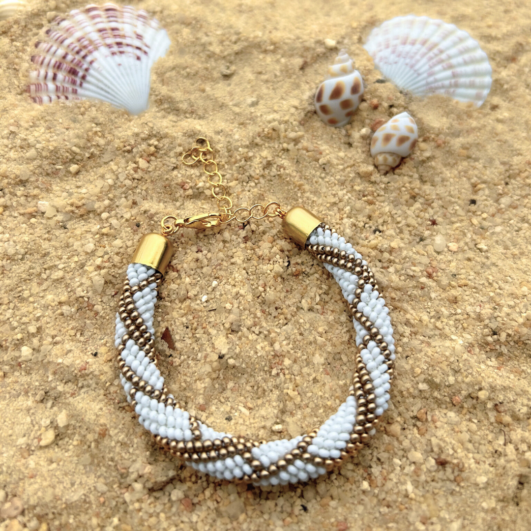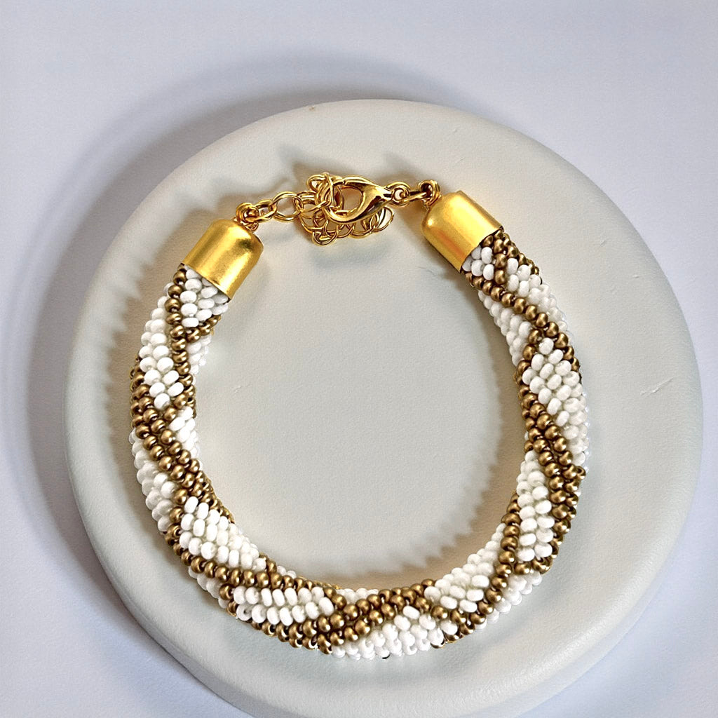 Your beadwoven jewelry is crafted from countless tiny, high-quality glass beads, sewn together. To keep it in pristine condition, handle it with care, avoid contact with hard surfaces, and gently wipe it with a non-alcohol wipe or a jewelry cloth to maintain its shine.